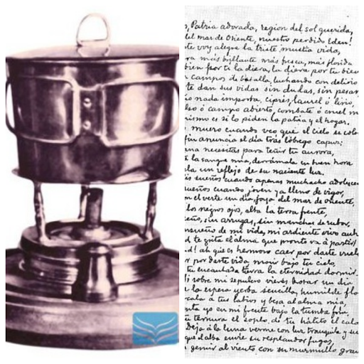 (Rizal's alcohol burner, a gift from the Pardo de Taveras where he hid his last poem “Mi Ultimo Adios” with his own handwriting)